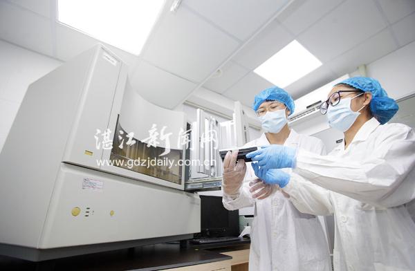 在DNA实验室,记者(左)暂时当起梁工程师的助理