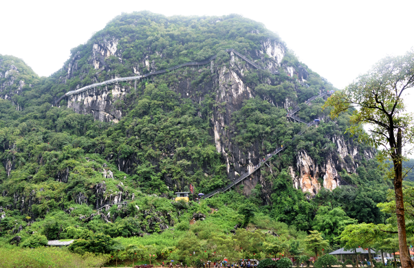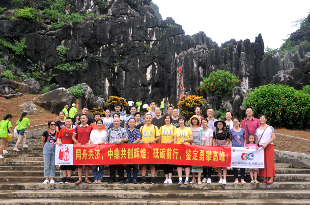 穿过龙宫,步行来到惊险刺激的春湾石林玻璃栈道和钢木栈道,悬崖陡峭、山路崎岖。古人云:“山高人为峰”,我们中鼎人不为崎岖,新老同志一步一个台阶沿着钢木栈道登上山顶,来到惊险刺激的玻璃栈道,置身其上,宛若踏足仙境,凌波微步、怡然自得,身后不断传来游客惊悸的呼叫声。栈道举目远眺浩淼碧水、绵延青山。