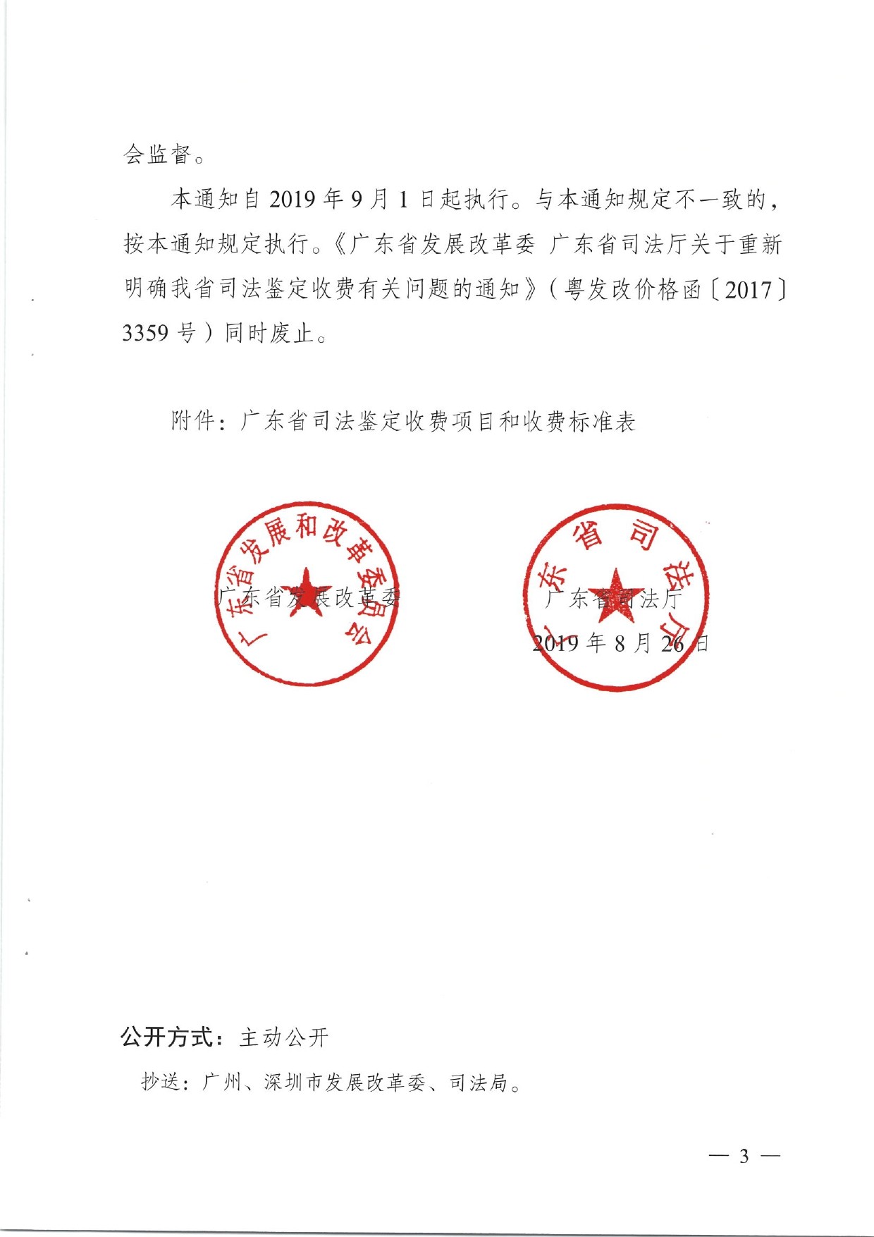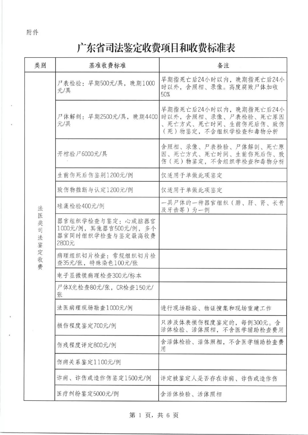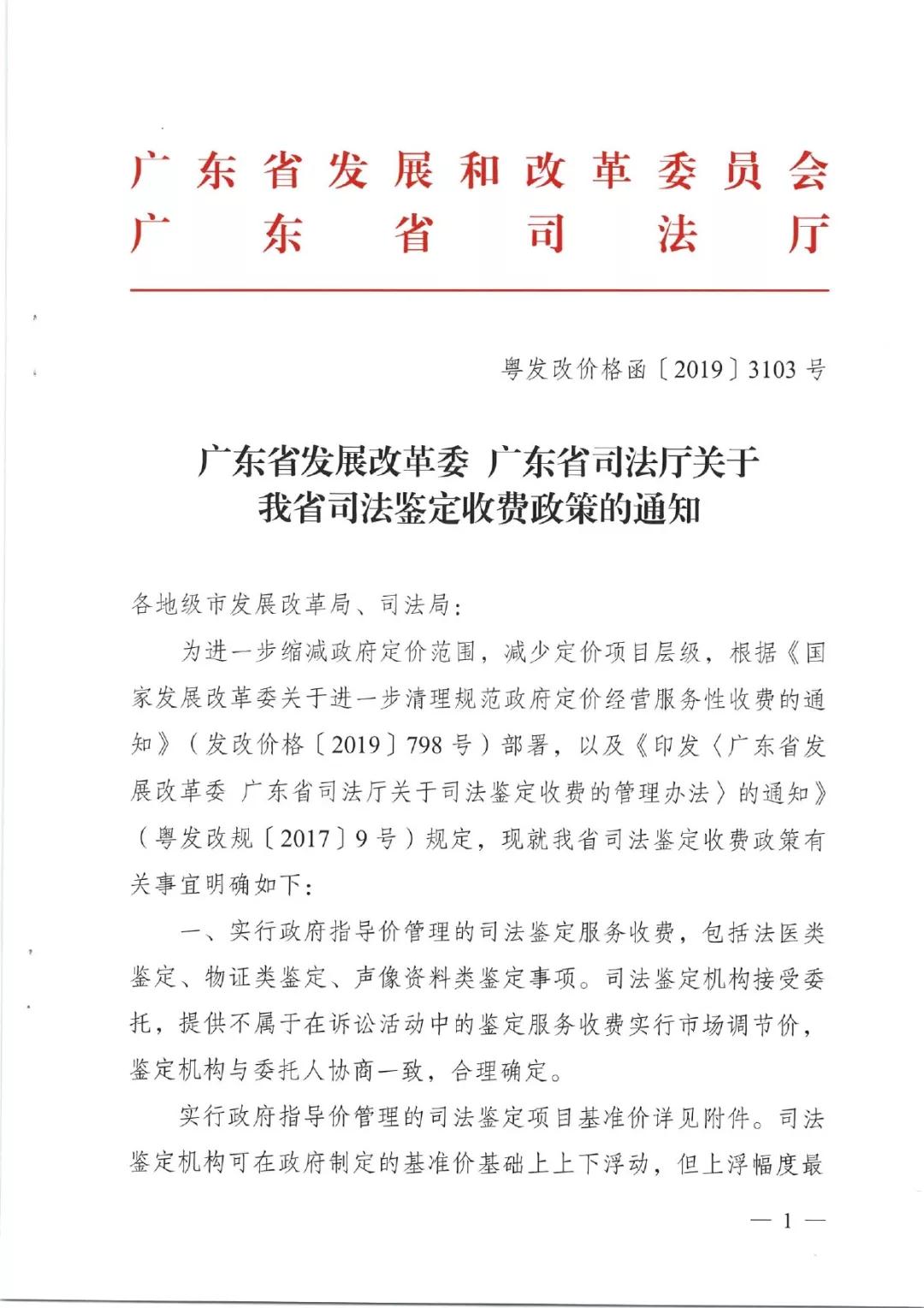 广东省发改委、司法厅关于司法鉴定收费政策的通知(2019年9月1日起执行)